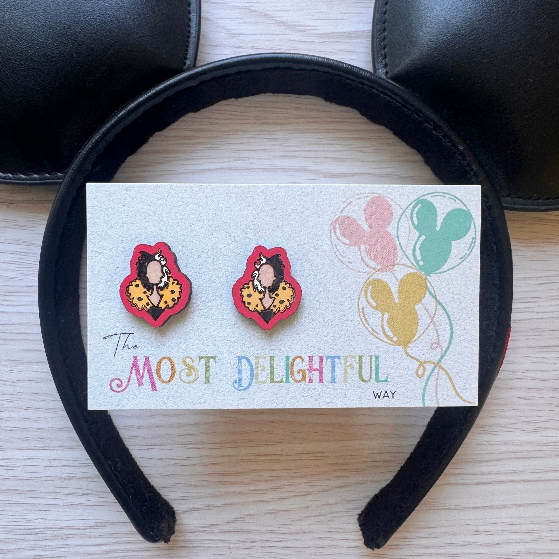 Fierce, fabulous, and unapologetically bold, just like Cruella herself. These Cruella-Inspired Stud Earrings feature her iconic two tone style and statement red collar, bringing a touch of villainous glamour to your look. Perfect for those who walk the fine line between style and chaos.