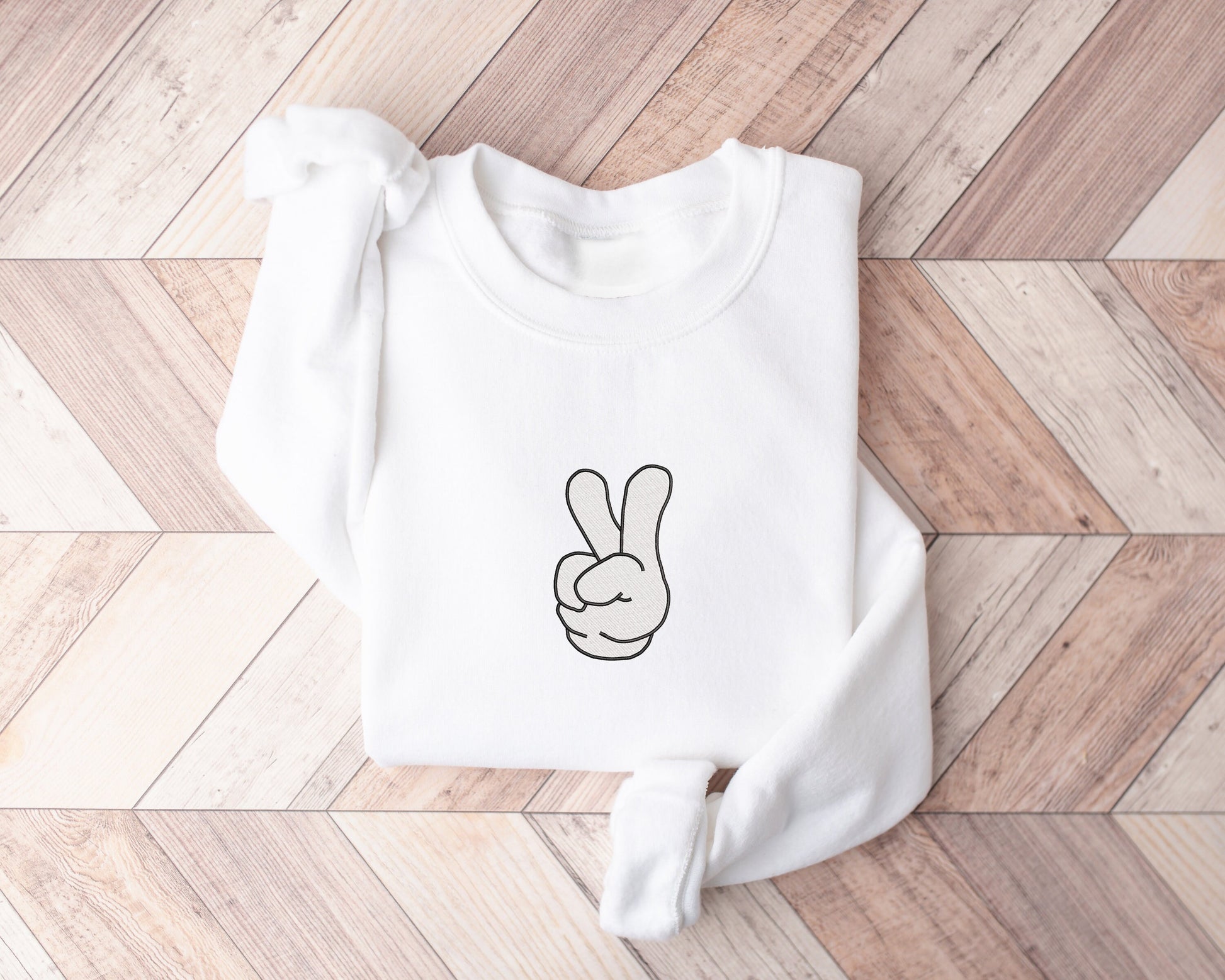 Keep your look cool, calm, and full of character. Featuring the iconic gloved hand flashing the peace sign, this minimalist design adds a relaxed Disney-inspired touch to your wardrobe. Perfect for spreading good vibes wherever you go!