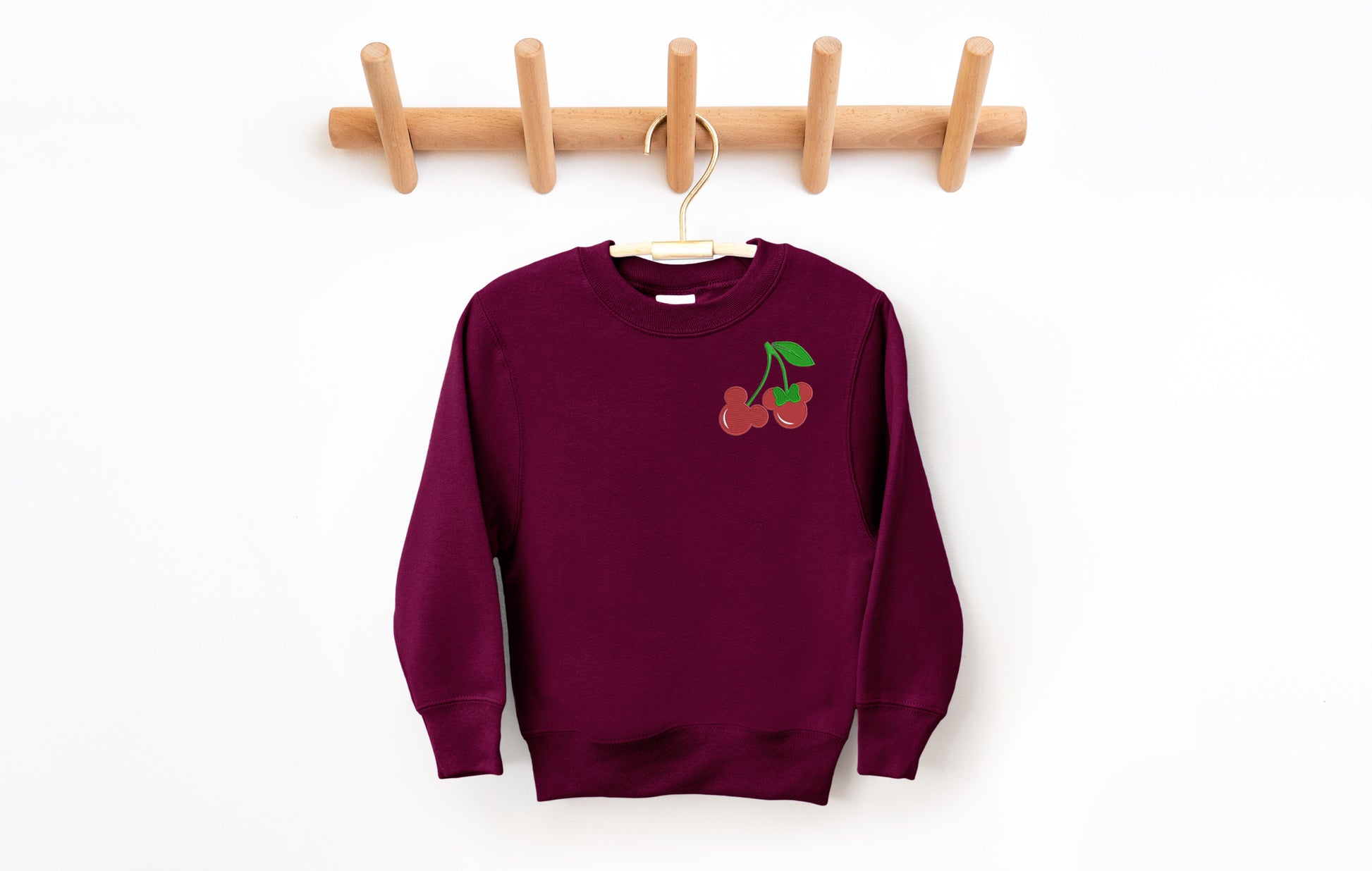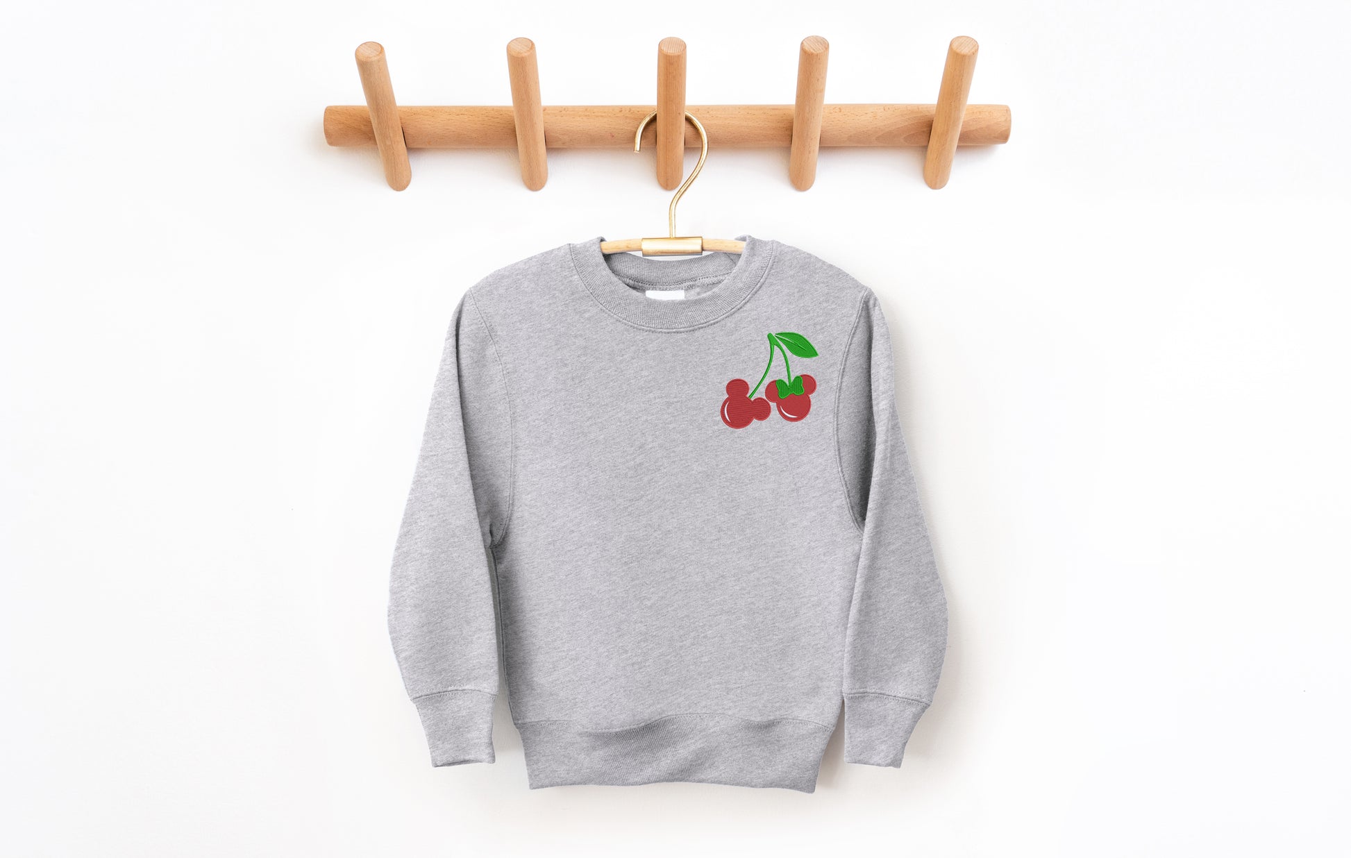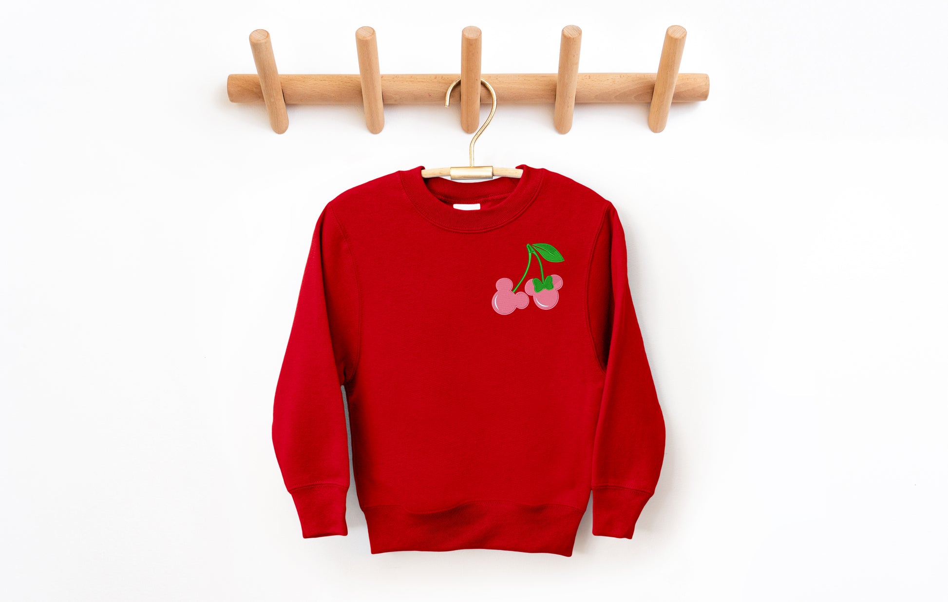 The Valentine Cherries Crewneck brings a fun twist to classic Disney style with embroidered cherry inspired Mickey and Minnie details. It’s soft enough for everyday wear, yet special enough to make any outing feel like a celebration.
