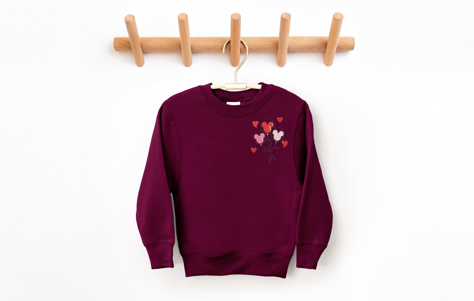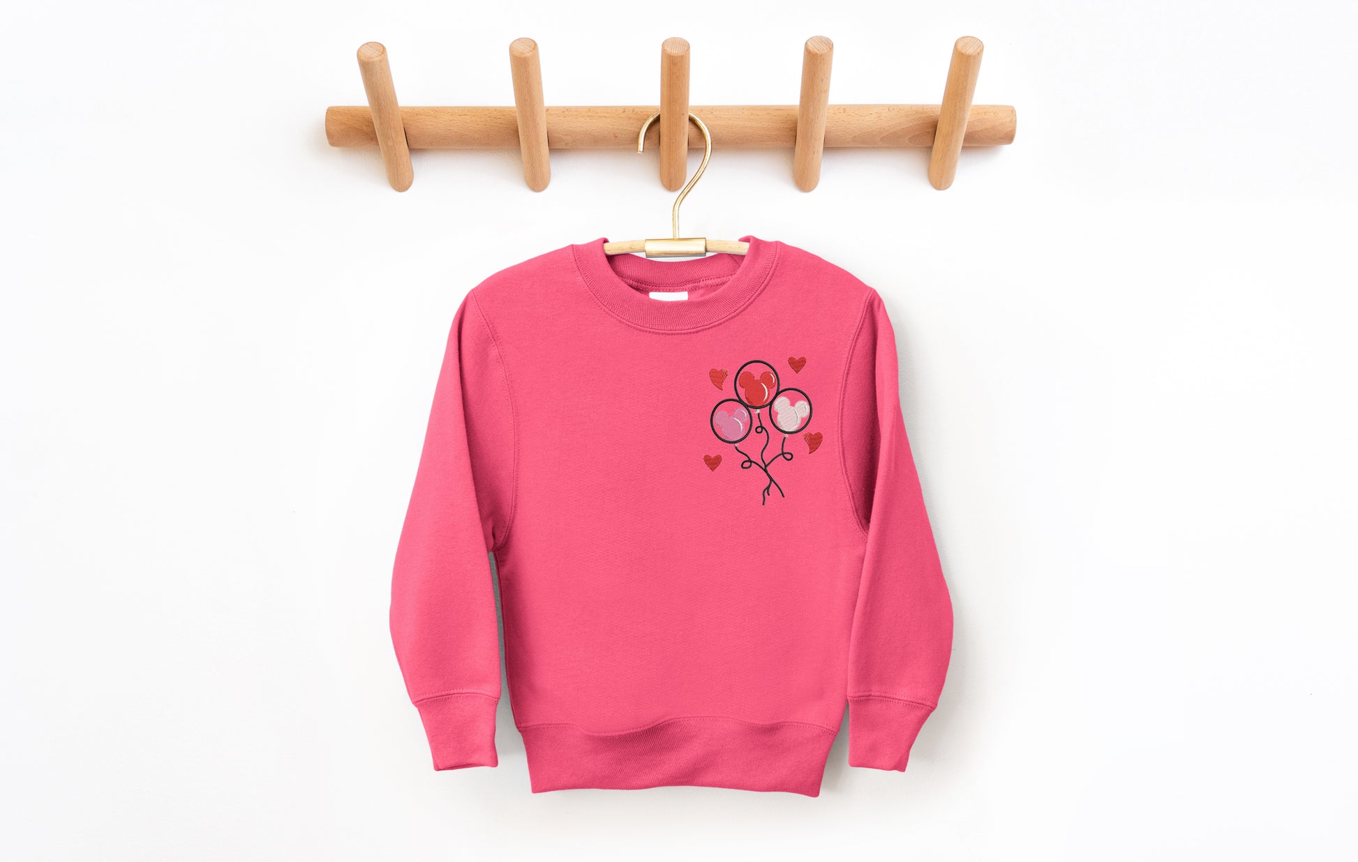 The Youth Valentine Mickey Balloons Crewneck captures that fluttery park day feeling. With embroidered Mickey balloons dancing in the air and sweet little hearts floating beside them. It’s soft, magical, and made for little dreamers who love spreading smiles wherever they go.